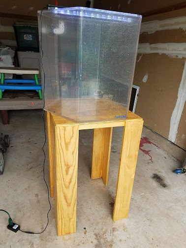 Cost over $500 last time I checked. Includes 55 hex aquarium and a simple but sturdy stand. I'll throw-in 1 LED light goo for low-light setup; probably anubias is the only live plant it's good for. No filter. It is fitted for a 1" low-flow overflow currently capped-off but sump ready for anyone who knows how to work with PVC.